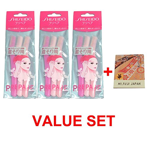 FT Shiseido Eyebrow Razor 3pcs x 3 Pack set (total 9 pcs) with Premium Oil Blotting Paper Value Set
