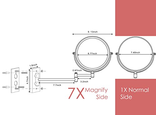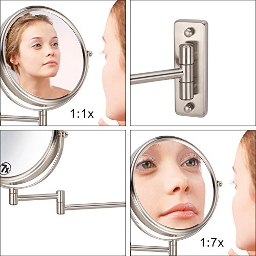 Cerdeco 8 Inch 7X Double Sided Wall Mount Mirror Nickel Finished 360° Swivel Extendable Cosmetic Mirror Magnification Makeup Mirrors