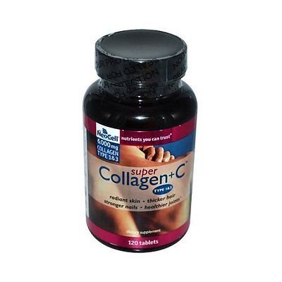 -. Feature : Super Collagen plus c type iandiii tablets : the collagen peptides type 1and3 in Super Collagen support collagen in tendons, ligaments, hair, skin, nails, and lean muscle. These two types of collagen are the main types found in connective tissue making up 90% of the body's total collagen content. / Super Collagen is then enzymatically hydrolyzed, providing a collagen amino acid ration with a low molecular weight for maximum bioavailability. Because Super Collagen genetically parallels the amino acid structure of our own body's collagen, persons taking Super Collagen will experience a 90% absorption rate into the blood stream where cellular changes occur. / Sested Use: As a dietary supplement, take three (3) Super Collagen plus ctm tablets twice daily on an empty stomach for maximum absorption / Allergy Warning: May contain sulfite residues / Super Collagen is rich in hydroxyproline and hydroxylysine, which are two key amino acids specific only to collagen and especially important to collagen production. The benefits of supplementing with Super Collagen are twofold: the body is nourished with collagen 1 and 3 where it is deficient and then Super Collagen acts as a messenger to trigger the synthesis of new collagen fibers. Super Collagen is derived from pharmaceutical food grade bovine collagen that is extracted from the dermal layer.