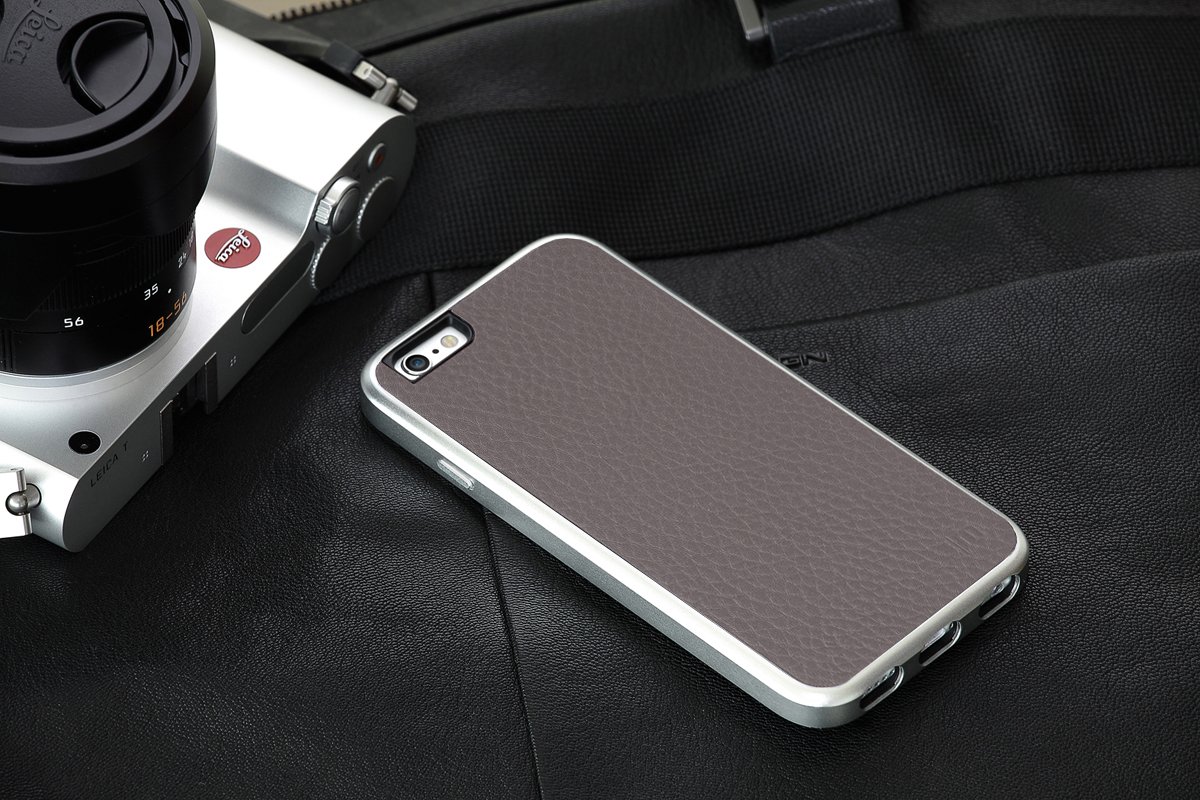 It is a hybrid protective case for iPhone 6 which adopted the double structure of stylish aluminum frame and genuine leather inner case.