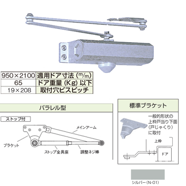 ●仕様:パラレル型・ストップ付(ストップ角度70~180°)・ドア重量65kgまで