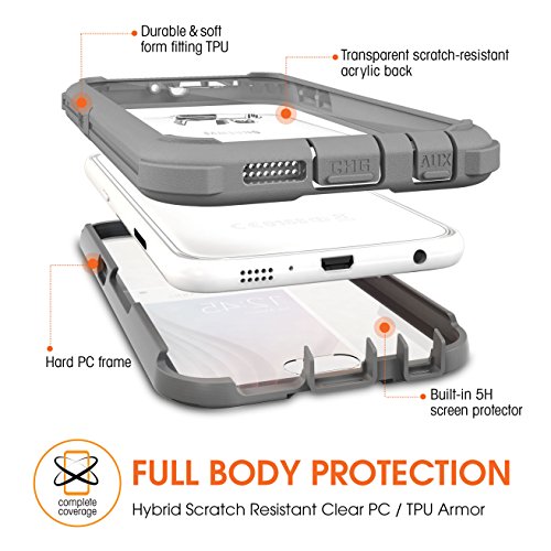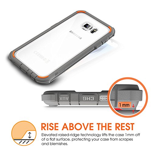[Description] Crafted with military grade design for Samsung Galaxy S6. Mil-spec certified (MIL-STD-810G/MIL-STD-810F). Clear beautiful design of the Galaxy S6 is prominently displayed and protected by the clear back cover Extremely versatile hybrid dual layer case with superior front and back protection 5H screen protector and shield covers for volume and power buttons Drop protection and impact-resistant safeguarding your device beyond normal wear and tear