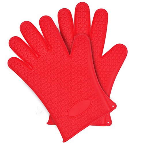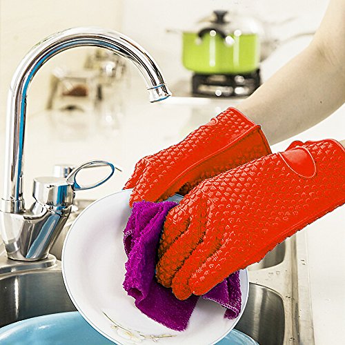 - PREMIUM QUALITY & EASY TO CLEAN: The eco-friendly gloves are made of 100% food grade silicone, Non-toxic and odorless. You can wear the gloves to tend the BBQ meat and Hot roasted Chicken. The gloves are waterproof, Non-Sticky and easy to clean.