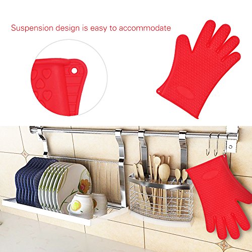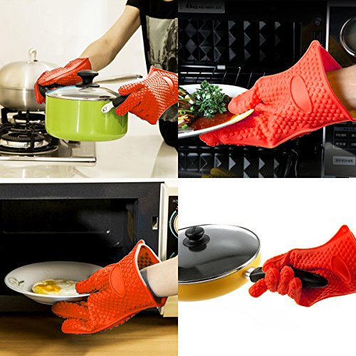 KLICHPARTS Oven Mitts Gloves Waterproof Heat Resistant Silicone BBQ Grilling Gloves for Cooking Baking Barbecue Potholder 1Pair (Red)