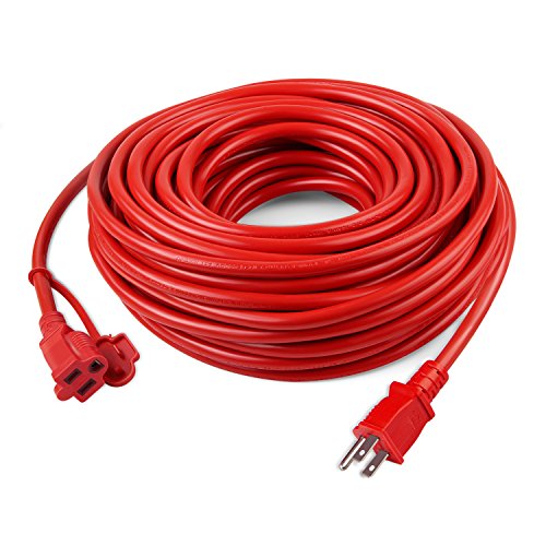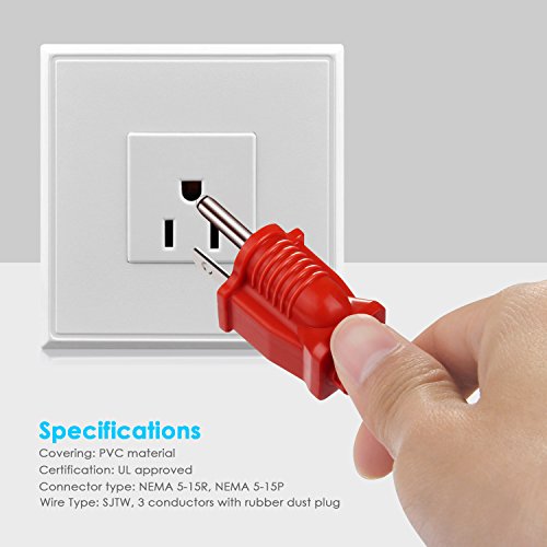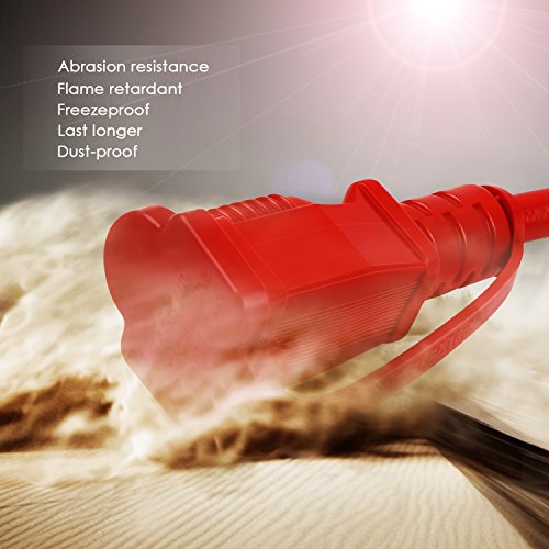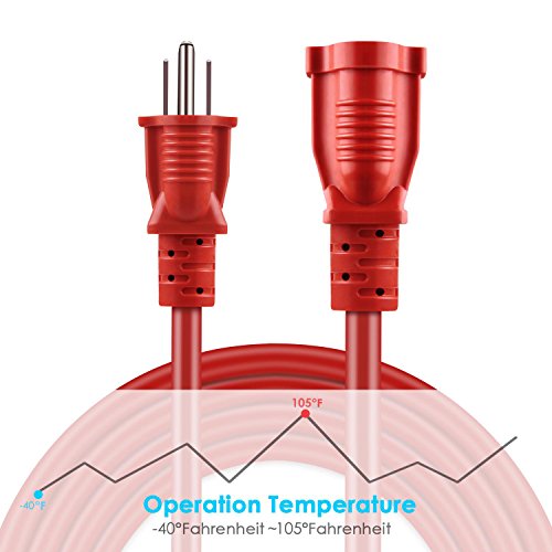 【14 Gauge Heavy-duty】High visibility red for easy recognization; 14 gauge Heavy-duty molded ends are very durable; 3-prong grounded plug for added safety