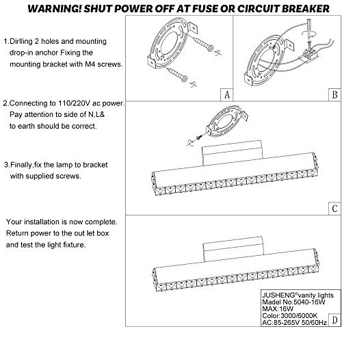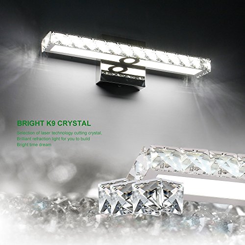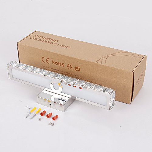 JUSHENG 16W Bathroom Vanity Light, LED Crystal Bathroom Light Fixtures Up Mirror Light, 16W 1500 Lumen Bathroom Bedroom lighting (Transparent Daylight white)