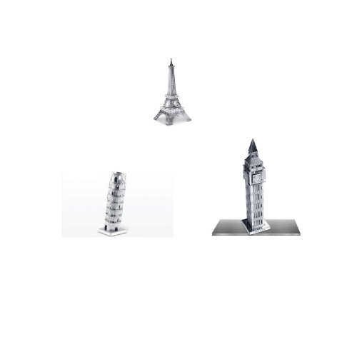 -. Feature : Set Includes 3 Kits: Eiffel Tower - Tower of Pisa - Big Ben / Pop Out the Pieces - Put Them Together - Show Off Your Steel Model / Ages 14+ / 3D Laser Cut Models / Approximately 3" Each