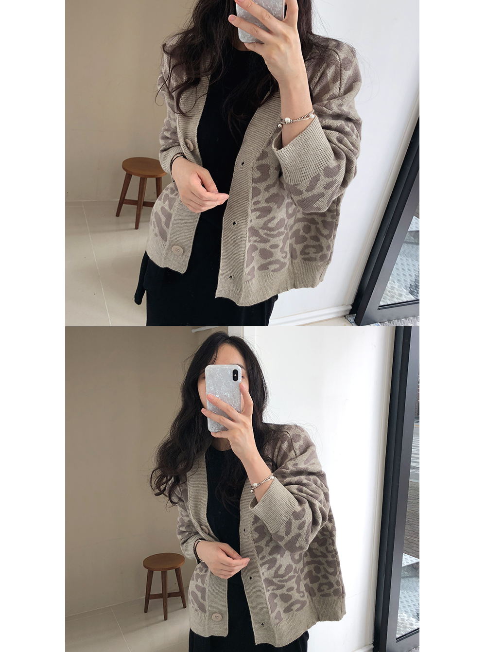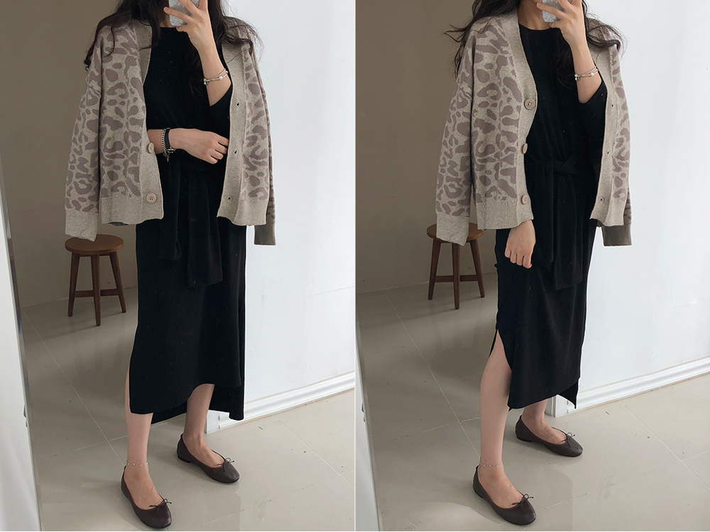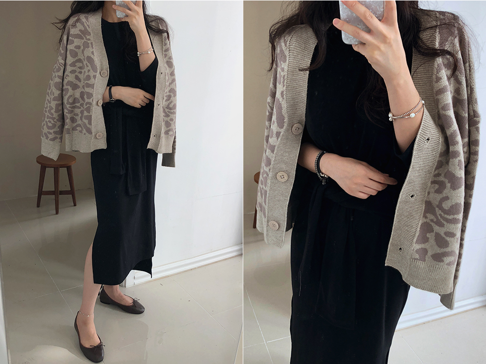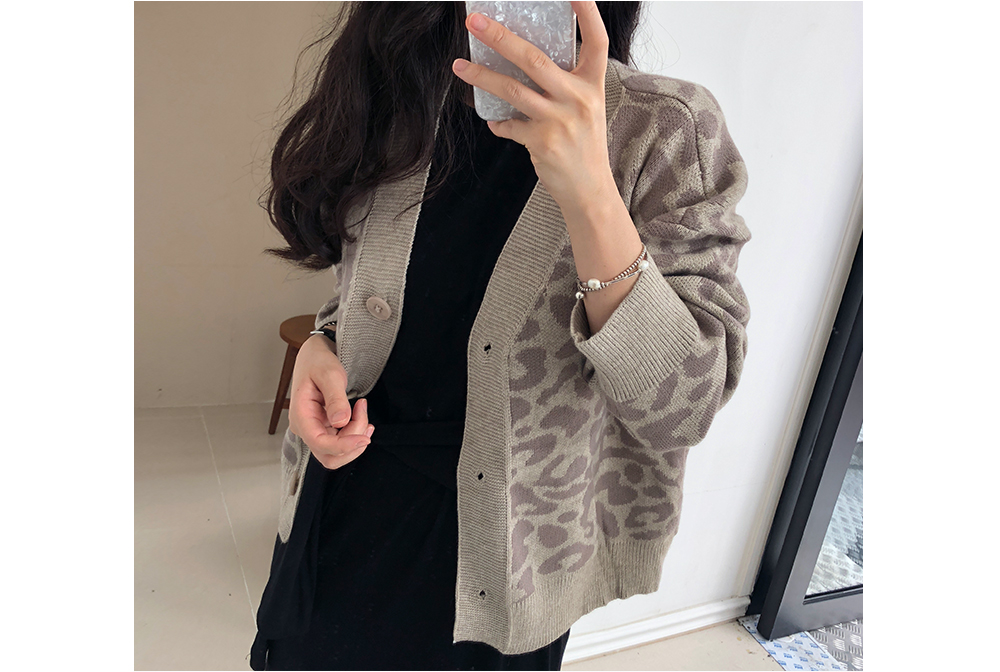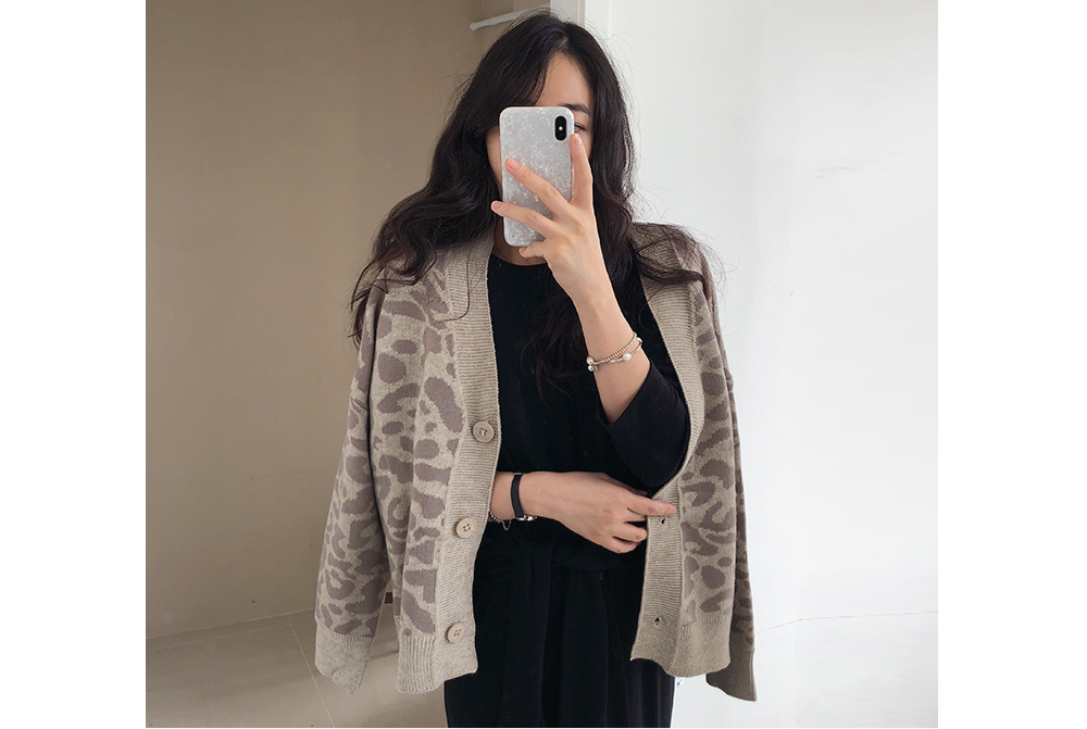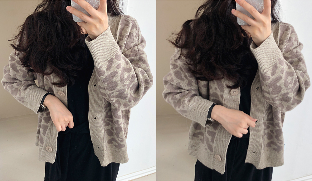 레오파드 루즈핏 니트 가디건