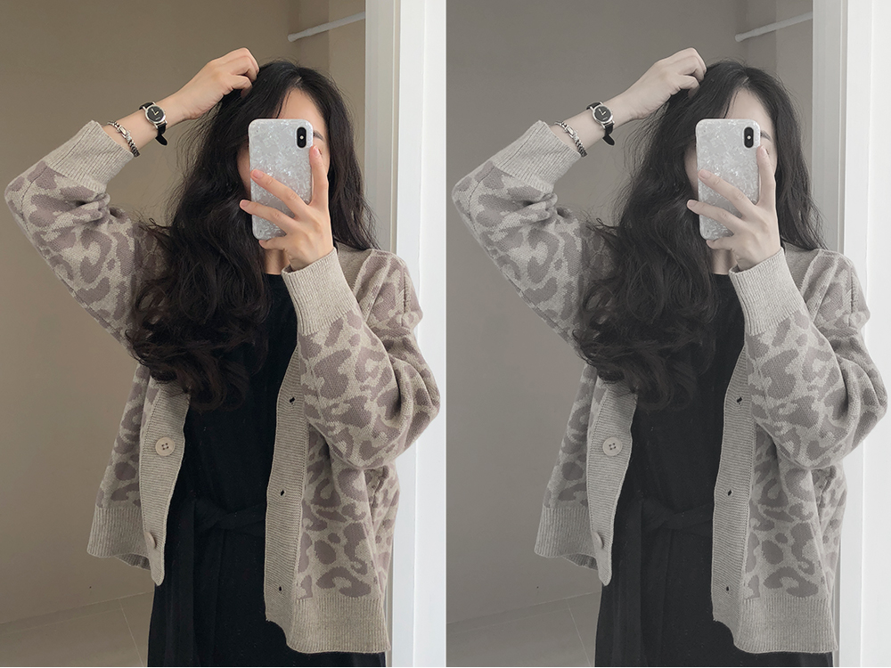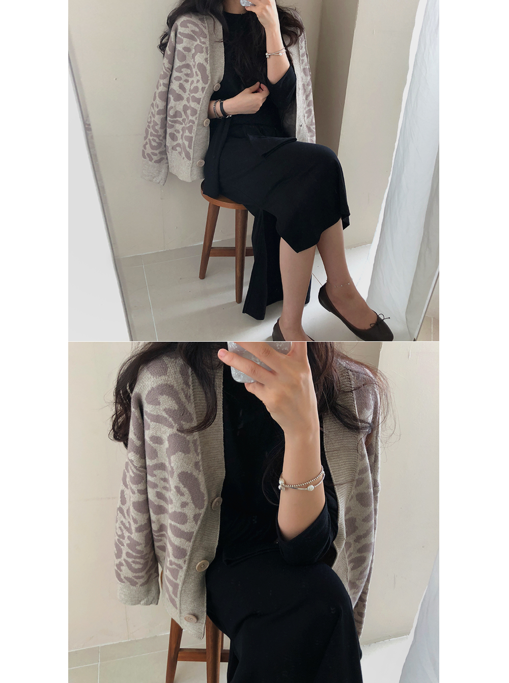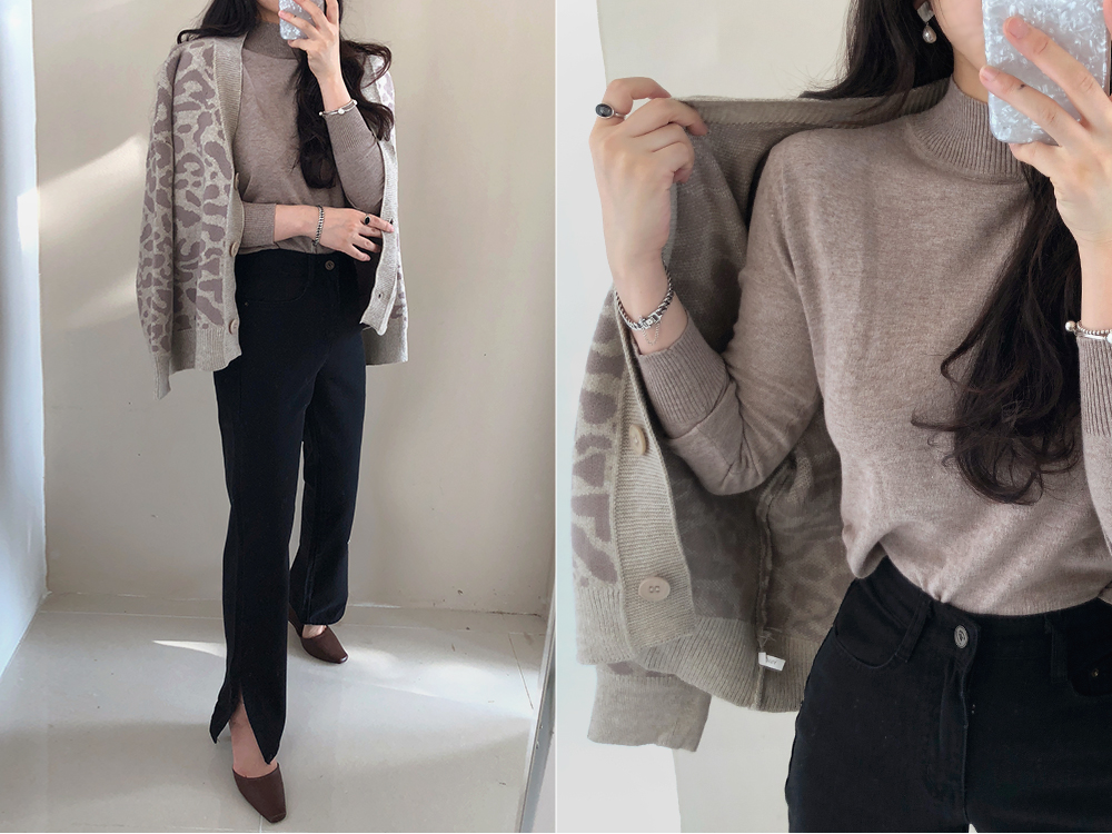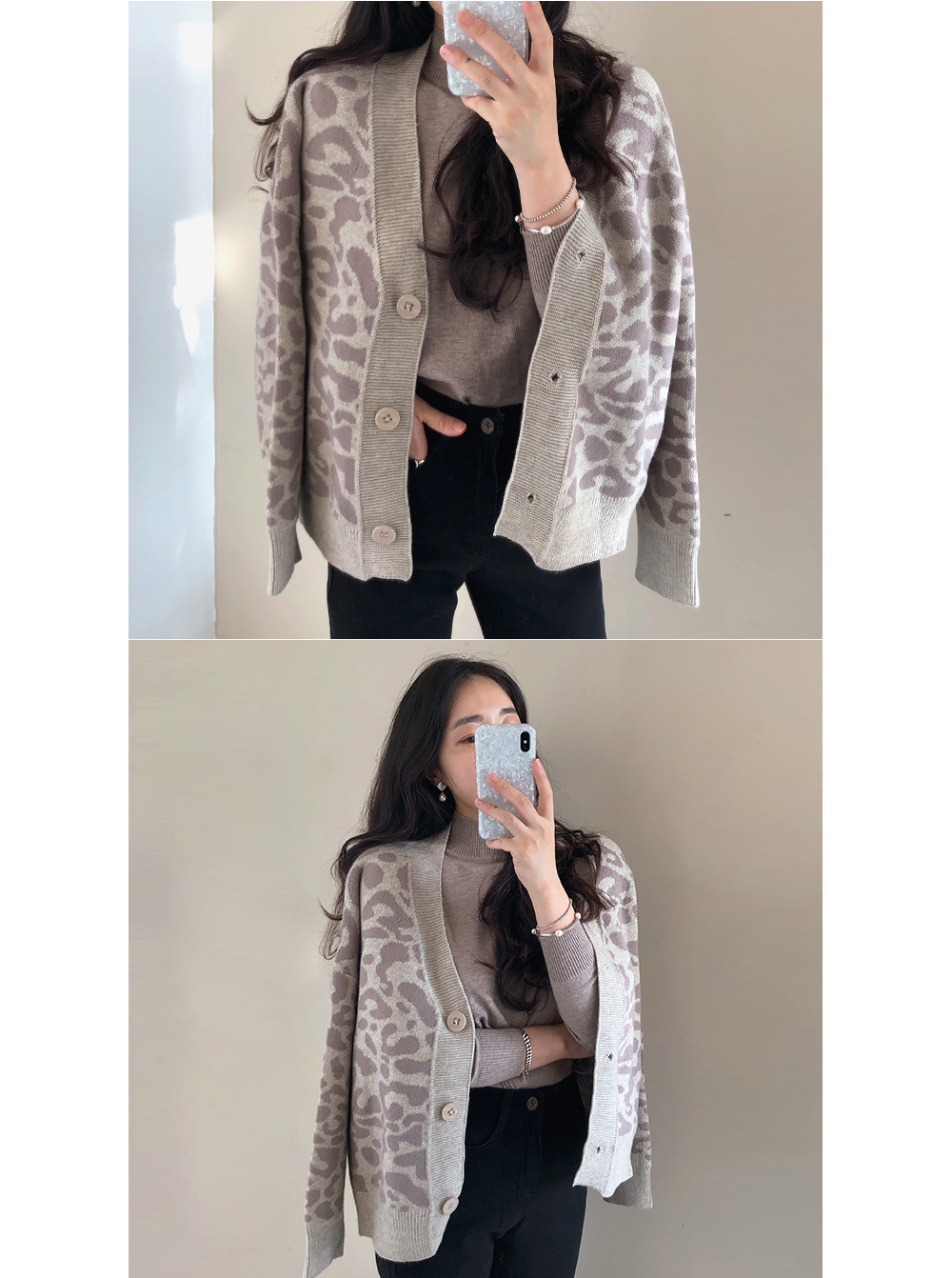 레오파드 루즈핏 니트 가디건