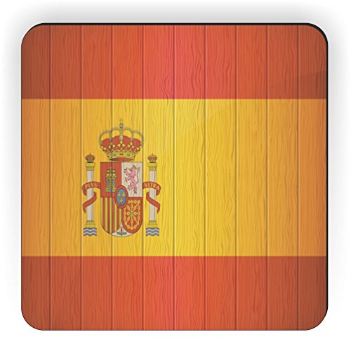 Rikki Knight Spain Flag on Distressed Wood Design Square Fridge Magnet