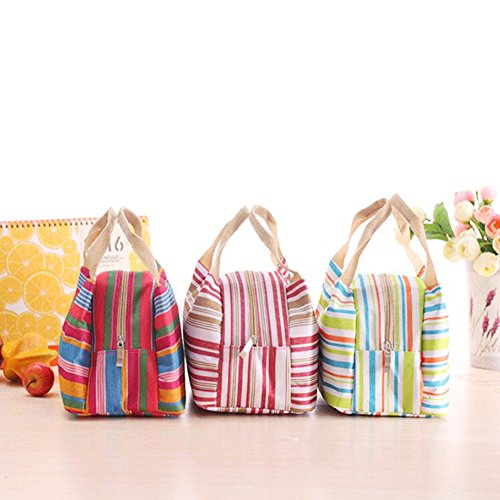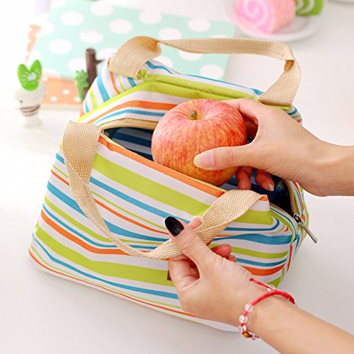 - - Stylish striped design,suitable for all groups,include men,women,girls,boys and kids.New Picnic Lunch Bag Tote Insulated Cooler Travel Zipper Organizer bag
