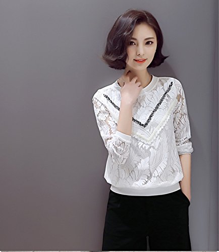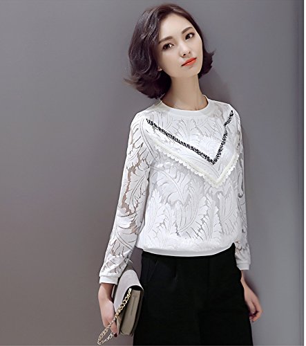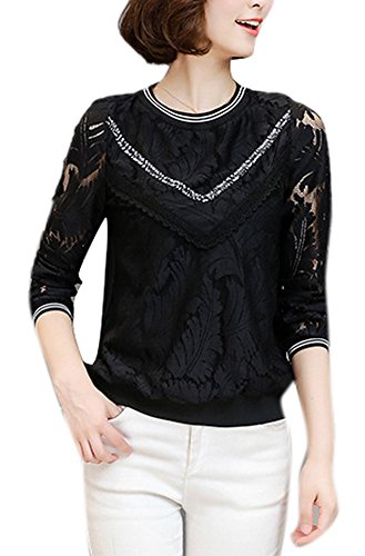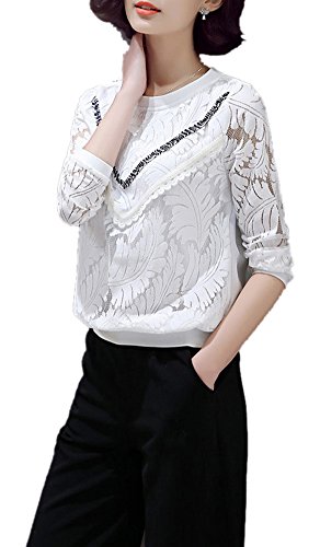 Lingswallow Women's Elegant Long Sleeve Tops Slim Crewneck Lace Blouse Shirt S:Shoulder:13.78".Bust:35.43".Sleeve:23.62".Length:23.62". === M:Shoulder:14.17".Bust:37.01".Sleeve:24.02".Length:24.02". === L:Shoulder:14.57".Bust:38.58".Sleeve:24.41".Length:24.41". === XL:Shoulder:14.96".Bust:40.16".Sleeve:24.80".Length:24.80". === XXL:Shoulder:15.35".Bust:41.73".Sleeve:25.20".Length:25.20".S=US 0-2,M=US 2-4,L=US 4-6,XL=US 8-10,XXL=US 10-12