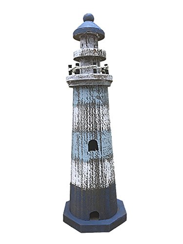 Wooden Weathered Look Lighthouse 10 Inches Tall (Dark Blue Base W/Light Blue and White Stripes)