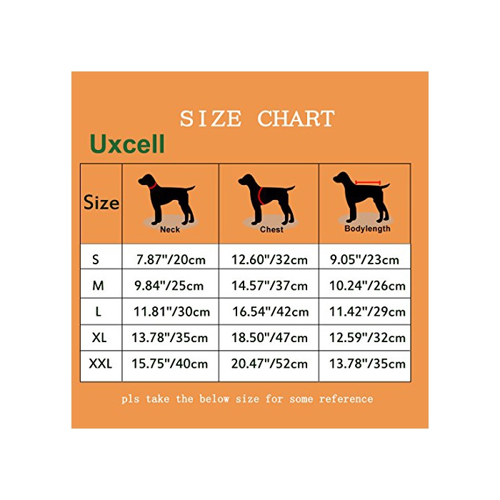 S:등의 길이:7.87인치/20cm,가슴둘레:12.60인치/32cm,넥:9.05인치/23cm
