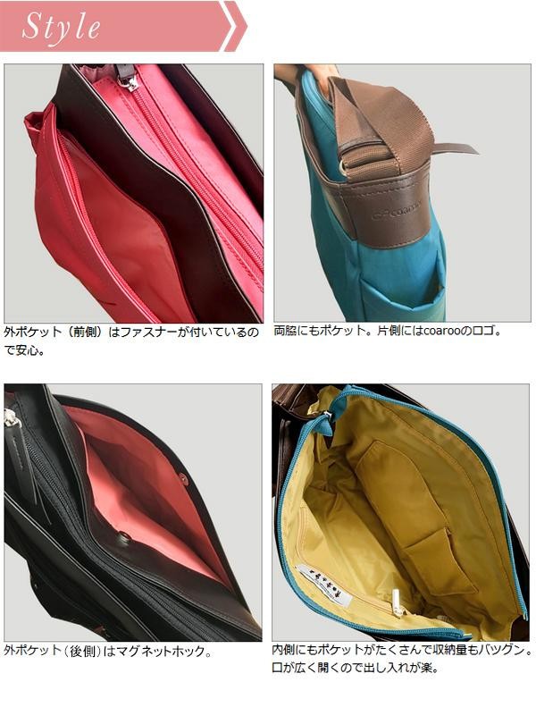 A4が入って、スリムなマチが体にフィット。持ち手がなく、5WAYコアルーベルトだけでシンプルに掛けられます。毎日のお出かけ、休日のお散歩や旅行のサイドバッグにも最適です。 |