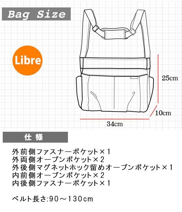 | サイズ | バッグ(ベルト除く):34×10×25cm 個装サイズ:25×34×10cm |