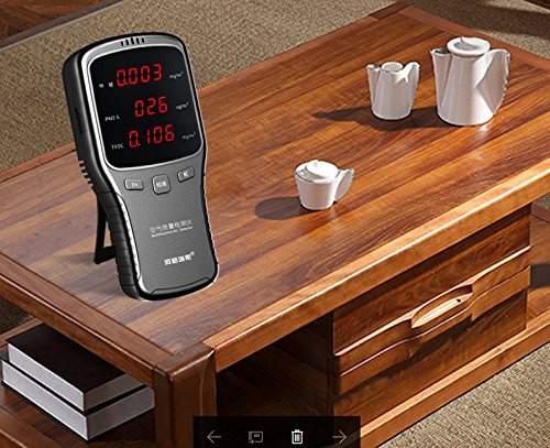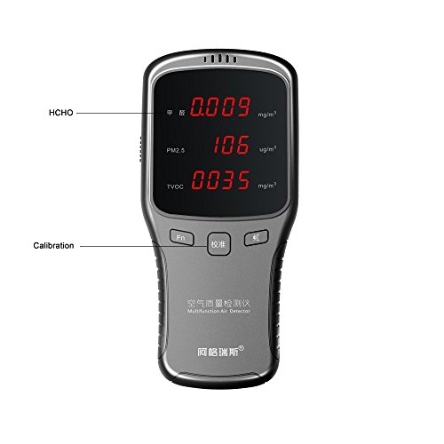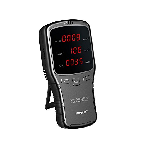 ACCURATE DETECTION: It adopts imported sensor technology and high precision calculation amplified chip that can transfer density signal of formaldehyde, TVOC, PM1, PM2.5 and PM10 in the air into electrical signal going through the microcomputer processor to display real-time monitoring result with digital LCD display.