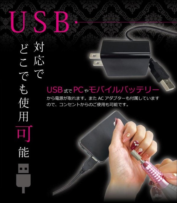 回転数8500-15000rpmで、ケアからオフまで可能。USB対応で持ち運びにも便利です。 |