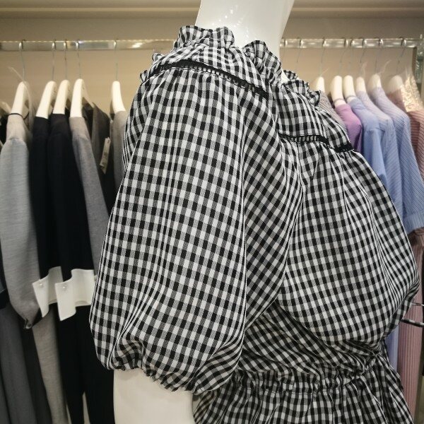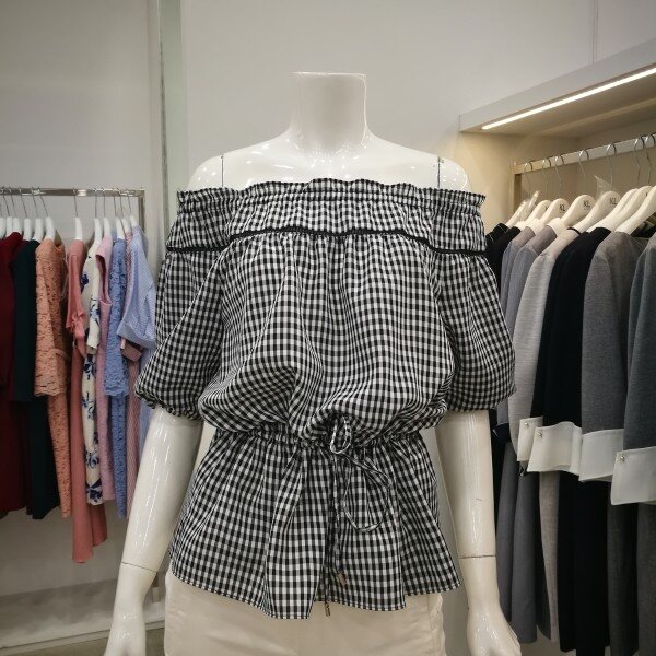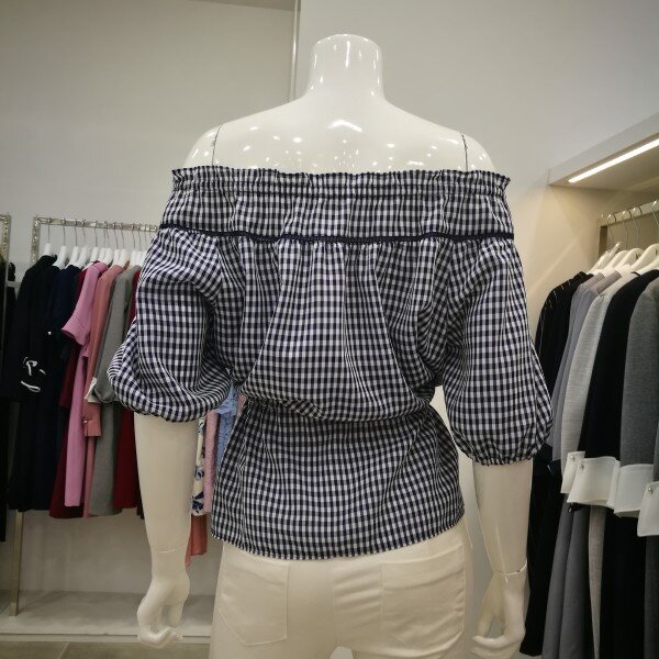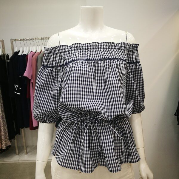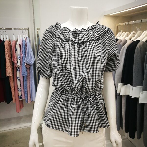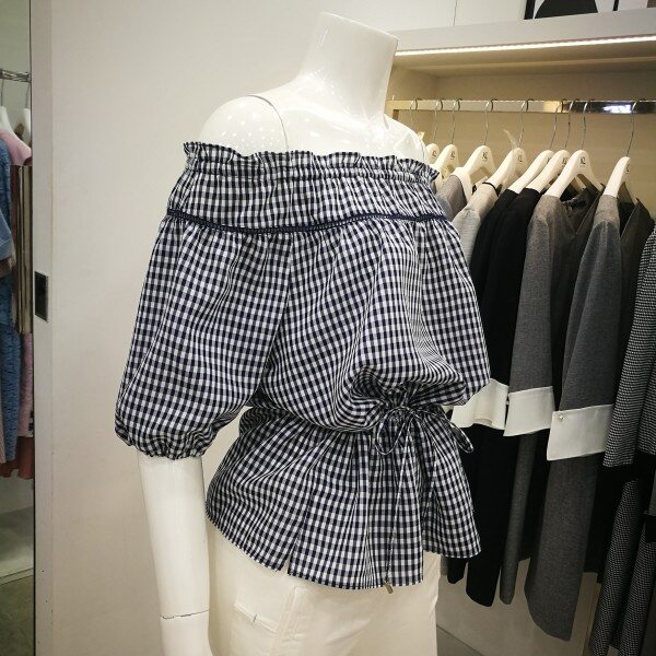 귀여운 체크무늬 오프숄더 블라우스입니다. 오프숄더가 부담스럽다면 일반 셔링 블라우스처럼 연출도 가능하답다~허리를 리본으로 줄이고 볼륨감을 넣어주면 더욱 러블리한 느낌으로 입을 수 있어요! 네이비와 블랙 두가지 상품입니다.
