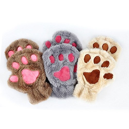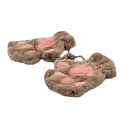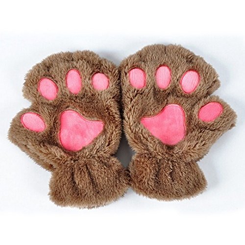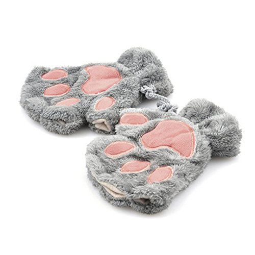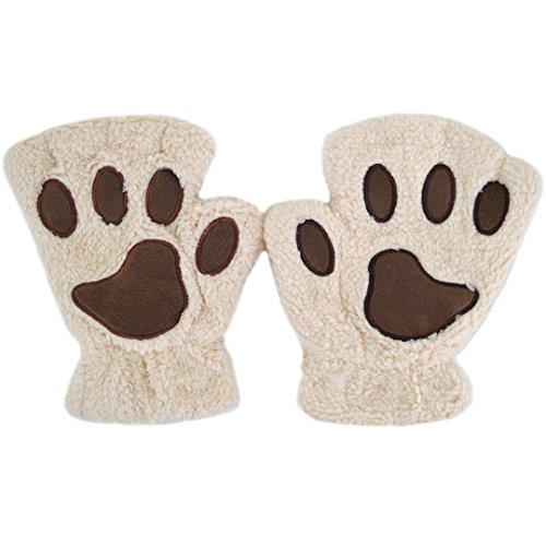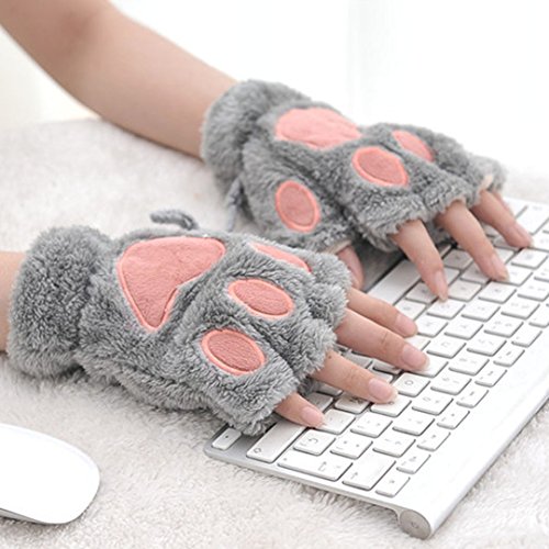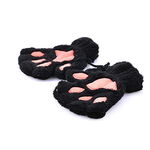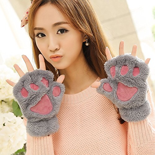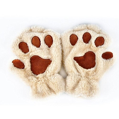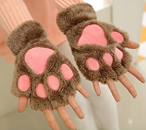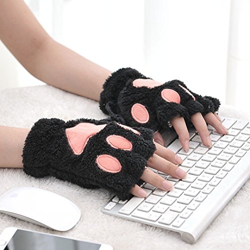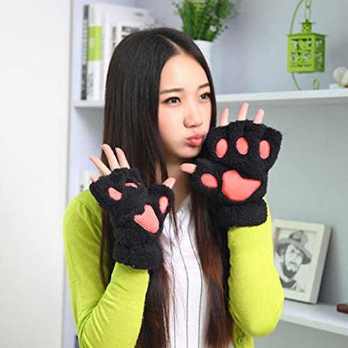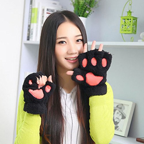 High end plush interior and exterior, double layer design, soft and smooth texture, excellent thermal insulation. Fingerless glove design, makes your hand flexible while keeping warm. Unique cat pad or bear paw cartoon design, lovely and stylish, suitable for all occasions, even matches with Halloween dresses.