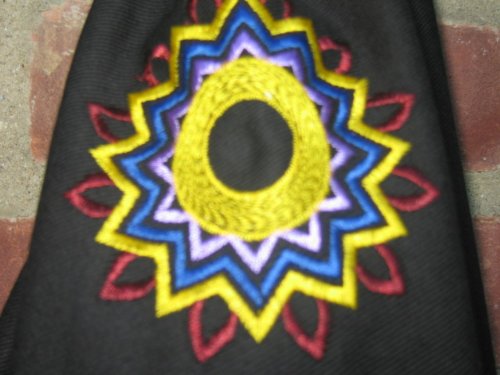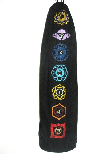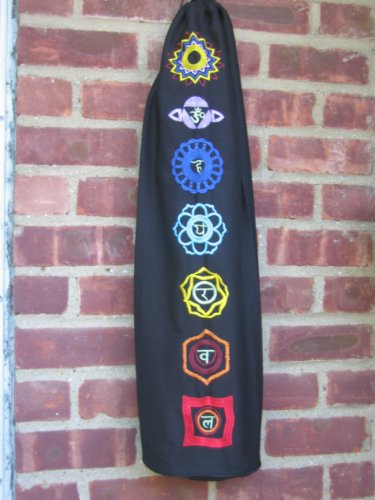Studio : OMSutra Publisher : OMSutra Binding : Sports Product Description Transport your yoga mat in design to class with our functional embroidered Chakra yoga mat bag. This gorgeous yoga mat bag has all the 7 chakra symbols embroidered from root to crown and decorated with the seven energy centers that run from the base of your spine to the crown of your head. This bag can also be given as a great gift to a yoga person in your life . OMSutra Chakra bag is roomy enough for your favourite yoga mats and anything else you want to bring to your practice, such as water bottle, straps, eye pillows and hand towels.The size of this functional drawstring bag is 29" x 7.5" x 11" and comes with adjustable carrying straps to hold any standard yoga mats comfortably. This chakra mat bag is made of 100% Cotton black twill fabric and has zippered inside pocket to hold your essentials. 0