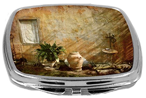 Rikki Knight Compact Mirror, Country Garden Tuscany with Plant