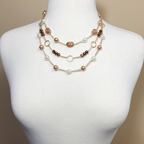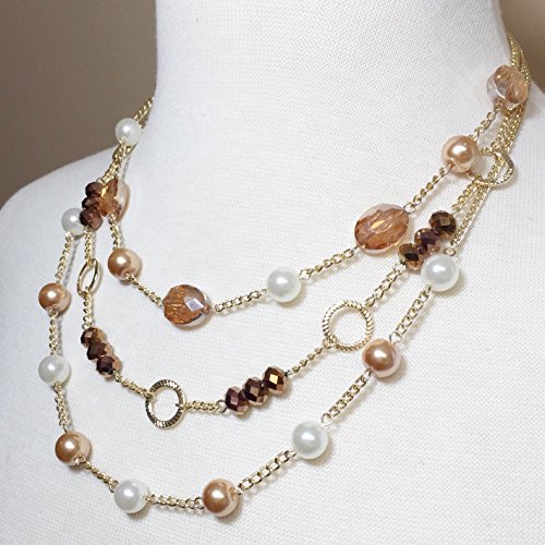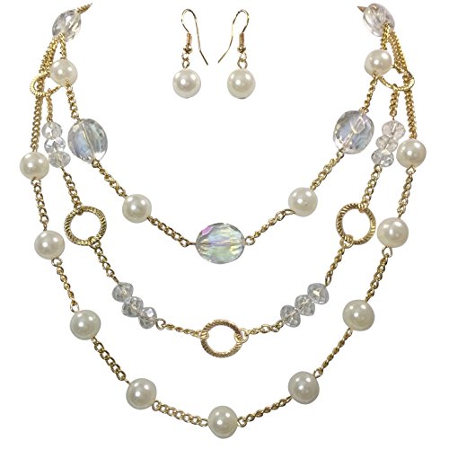 3 Row Layered Imitation Pearl Beaded Necklace And Earrings Set - Assorted Colors (Brown & White)