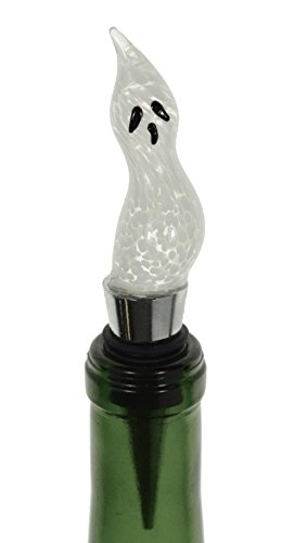 Glass Ghost Wine Bottle Stopper (20+ Designs to Choose From) - Colorful, Unique, Handmade, Eye-Catching Decorative Glass Wine Bottle Stopper with Flashing LED Light … (Ghost)