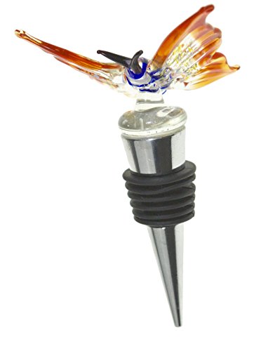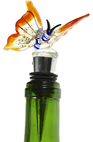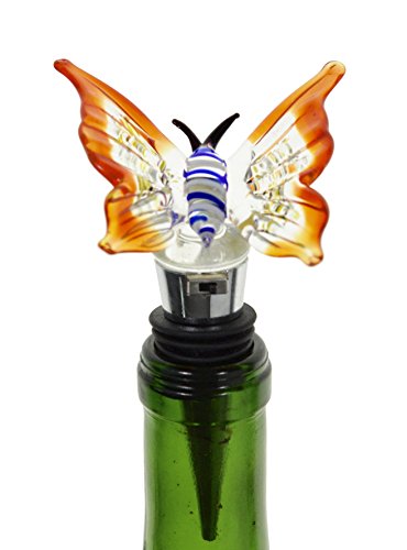 Glass Butterfly Wine Bottle Stopper (20+ Designs to Choose From) - Colorful, Unique, Handmade, Eye-Catching Decorative Glass Wine Bottle Stopper with Flashing LED Light … (Butterfly)
