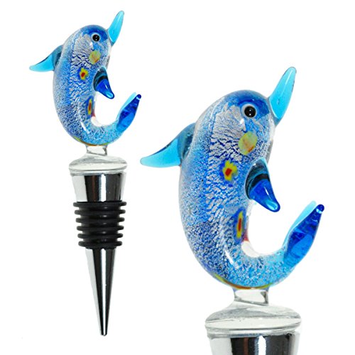 Glass Dolphin Wine Bottle Stopper (20+ Designs to Choose From) - Colorful, Unique, Handmade, Eye-Catching Decorative Glass Wine Bottle Stopper … (Dolphin)