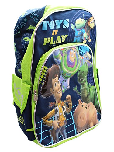 These toys are a little more than meets the eye! ; Toy Story backpack; Full size backpack; Includes 2 velcro side pouches; Features two compartments, one larger than the other, for storing books, binders, and other school essentials; Measures 16in (40.5cm) tall and 12in (30.5cm) wideFeature