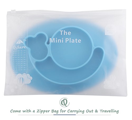 -. Title : Qshare Toddler Plates, One-Piece Baby Plate for Babies Toddlers and Kids, Portable BPA-Free FDA Approved Strong Suction Plates for Toddlers, Dishwasher and Microwave Safe Silicone Placemat 11x8x1''