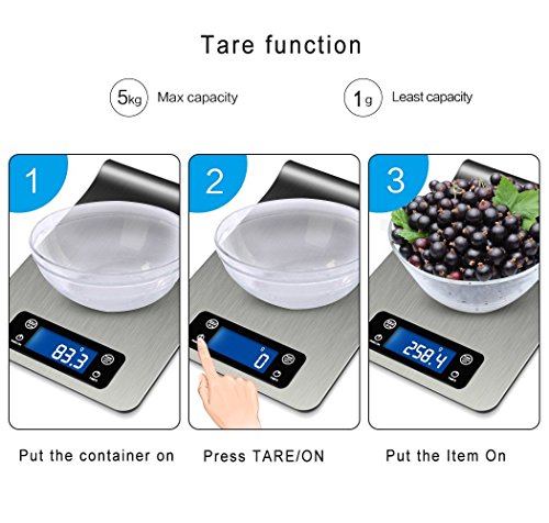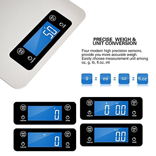 ★High Precision Sensors ★ -- Built with 4 high precision sensors, precisely measure liquids and solid item weight range up to 5000 grams. Can use to baking, cooking, postage, jewelry or others small object.