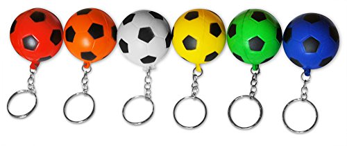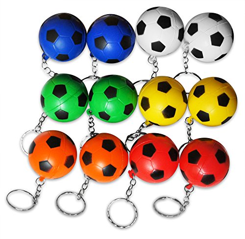 -. Feature : 12-piece sports keychains make ideal giveaways, carnival P.R.Izes or party favors in gift goody bags as stuffers for kids. Each measures 3. 5"l, with each soft foam squishy ball measuring approximately 1. 5"w, complete with durable metal split key rings. / 6 unique colored designs this multipack contains 12 key-chains, two each of green, yellow, red, orange, white & blue soccer balls. This party favor pack is the P.R.Ime mini size for goodie bag fillers for any kids team sport event. / Child friendly small sports balls are recommended for ages 3 & up. es, teachers, & parents alike will enjoy their boys or girls reaction to these give away key-chain novelty gifts. The keyrings add free fun everyday in school allowing them to be attached to backpacks & are great small P.R.Izes for any church fair carnival game. / P.R.Ime party supplies these key chains add flair to any party table setting as decorations or as a sports centerpiece. They are perfect for sports themed birthday parties & for games at get togethers. A must have along with all the balloons, candy, plush toys, & whistles in goodybags. / 30-day money-back guarantee lets you try novel merk sports ball keychains risk-free. If our products do not meet your approval, return them for 100% refund of your purchase P.R.Ice, no questions asked.
