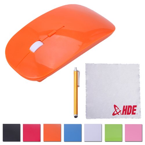 HDE Sleek Flat 2.4 GHz Wireless Slim Ergonomic Optical Mouse with DPI Switch and Stylus (Orange)