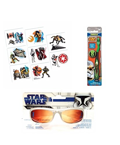 (1) Children's Star Wars Sunglasses 100% UV Protection. Safe in the Sun.(1 Assorted color) Star Wars Firefly toothrush, Soft Bristbles. (16) Tattoos.