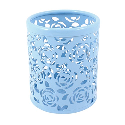Uxcell Metal Hollow Rose Pattern Pen Pencil Pot Holder, Light Blue