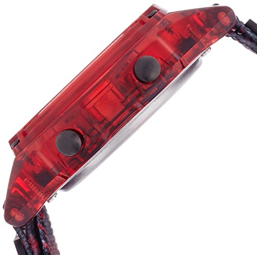 Japanese quartz digital movement with standard digital functions (day/time/date, alarms, countdown heat timer, chronograph and night vision backlight, durable polycarbonate case and hydro pushers which can be pushed underwater