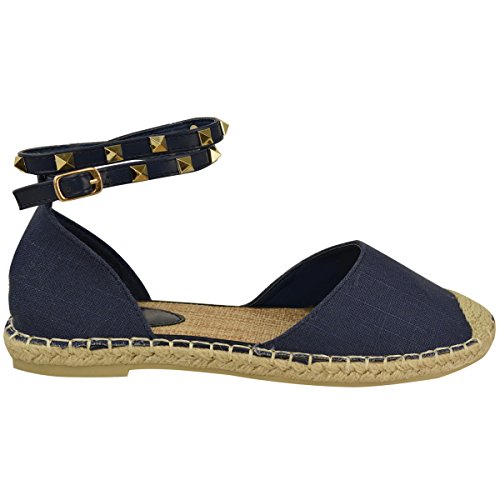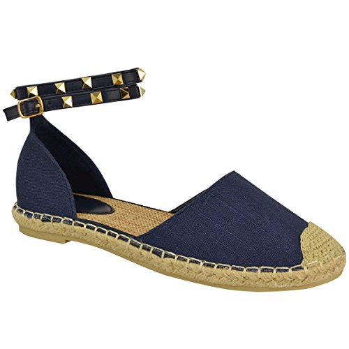 Fashion Thirsty Womens Ankle Strappy Flat Sandals Summer Espadrilles Rock Stud Shoes Size