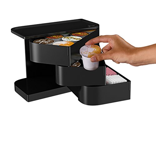 Mind Reader "Eclipse" 24 Capacity Single Serve Coffee Pod and Condiment Holder with Swing-Out Drawers, Black