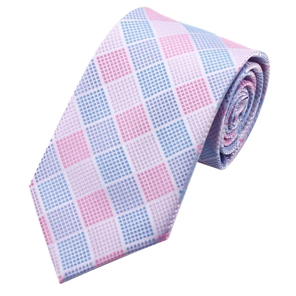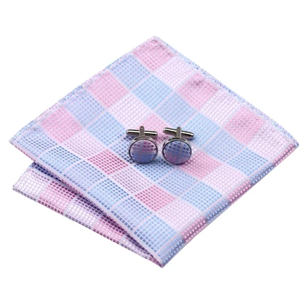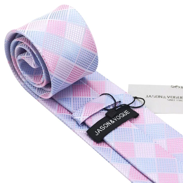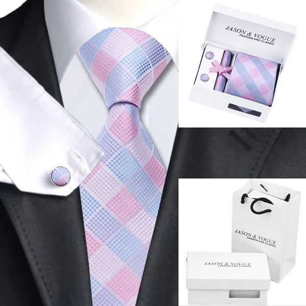 | [해외]HN-1198 라이트 블루 핑크 격자 무늬 넥타이 손수건 커프스 선물 상자 가방 세트 남성 100% 실크 넥타이 웨딩 파티 신랑 |