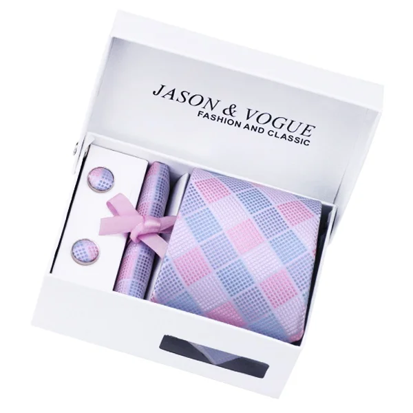 상품 내용 ![]() HN-1198 라이트 블루 핑크 격자 무늬 넥타이 손수건 커프스 선물 상자 가방 세트 남성 100% 실크 넥타이 웨딩 파티 신랑