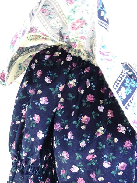 Ladies ブランド- カラー紺ベース メール便不可 コンディション★★★ 素材コットンだと思われます 表記サイズ記載なし スタッフコメントタグなし。ハンドメイドのような作りです。襟、左脇ロックにホツレあり。 実寸サイズ 着丈 51 cm 身幅 49 cm 袖丈 32 cm ラグラン袖の為、襟元から袖先までの計測 ※ウエスト・ヒップ以外は平置き採寸