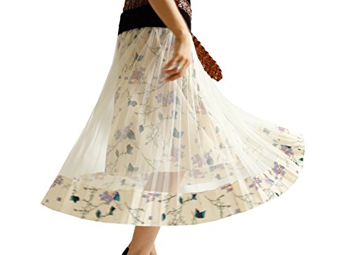 -. Title : (sawa a la mode)サワアラモード レディース Aライン プリーツ シフォン 花柄 膝丈 スカート 体系カバー