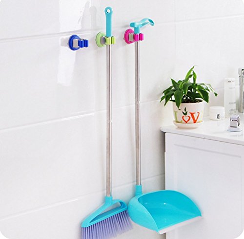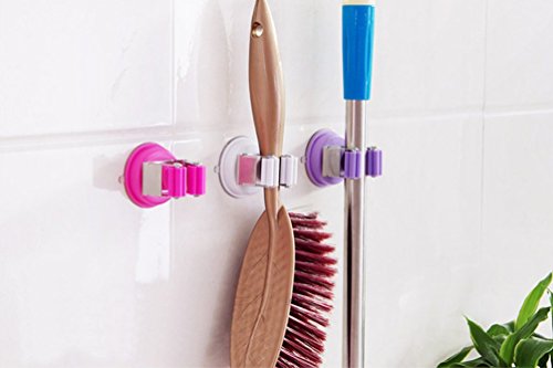 Scomfy Broom and Mop Holder,Pack Of 3, Super Powerful Vacuum Suction Cup Stainless Steel,Pink,Blue,Green Colors