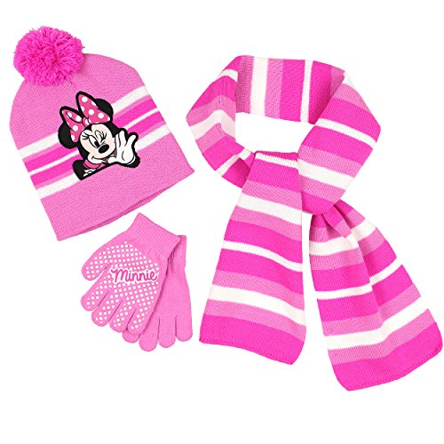 Binding : Apparel Product Description Your little sweetie will look adorable in this Disney hat, gloves, and scarf set! This knit set features your favorite Disney character, Minnie Mouse, from Mickey Mouse Clubhouse! The fully knit hat features sublimated, embroidered graphics and a pom pom on top and the matching gloves feature screen printed grippers. It's the perfect outerwear choice for any Disney Junior Minnie Mouse fan! 0