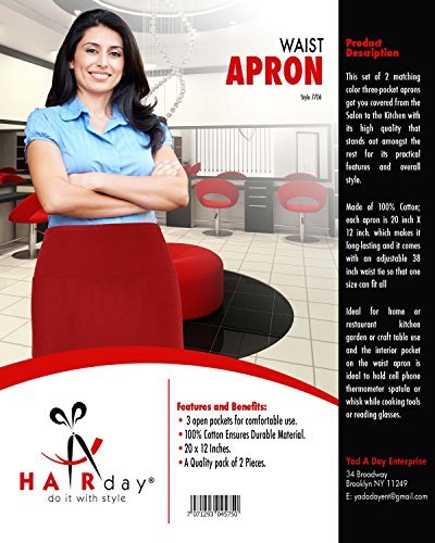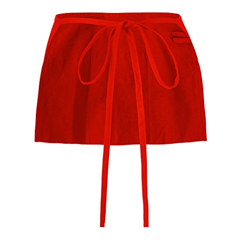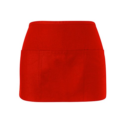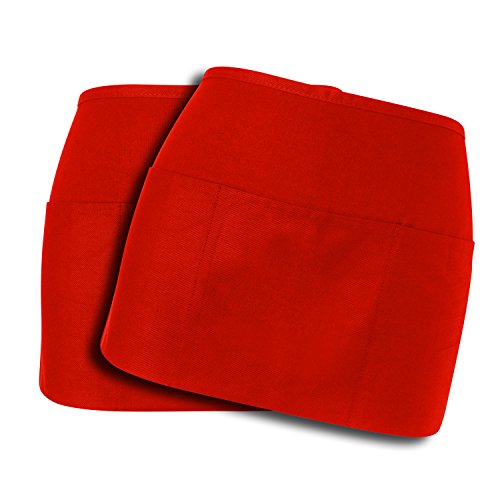 WorkDay Professional 3 Pocket Waist Apron (2 Pack) 100% Premium Cotton - Restaurant Half Aprons, Bartender Apron, Money Apron, Check Holder (Red)