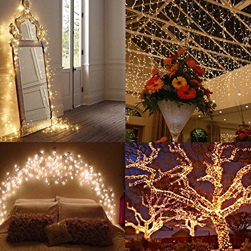 - 150 Brilliant LED lights - 150 LED bulbs on 50ft high quality copper wire, produce a cozy, warm white color, which enable you to decorate a beautiful and fairy world. Ideal for decorating your gardens, patio, lawn, porch, gate, yard, Christmas lights, wedding, party etc.