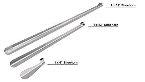 [Product Information]- Kit: 3 elegant chrome metal shoehorns: 1-31 inch, 1-23 inch and 1-6 inch