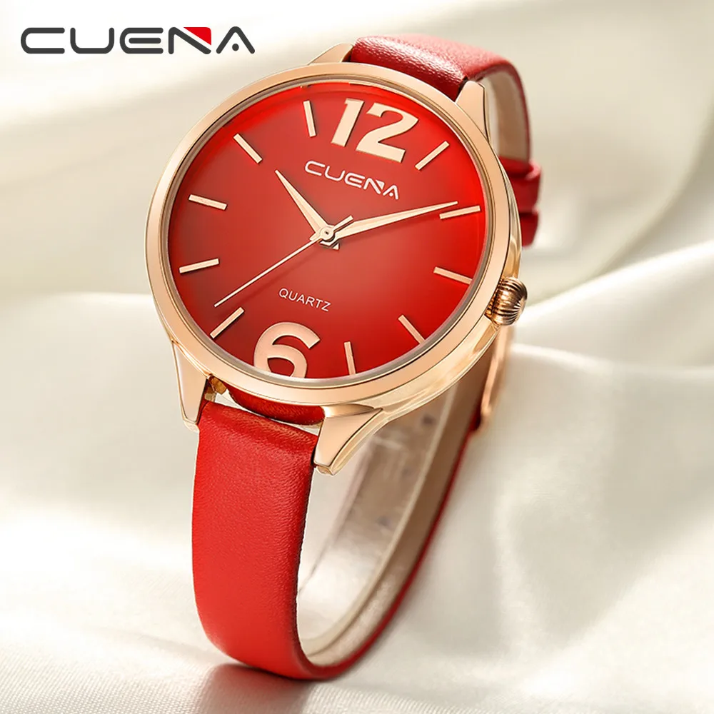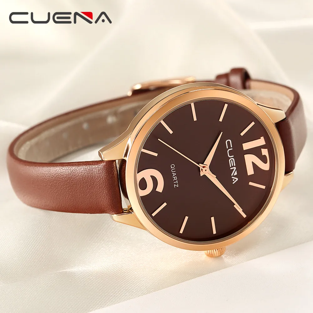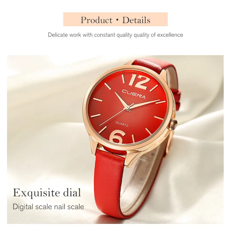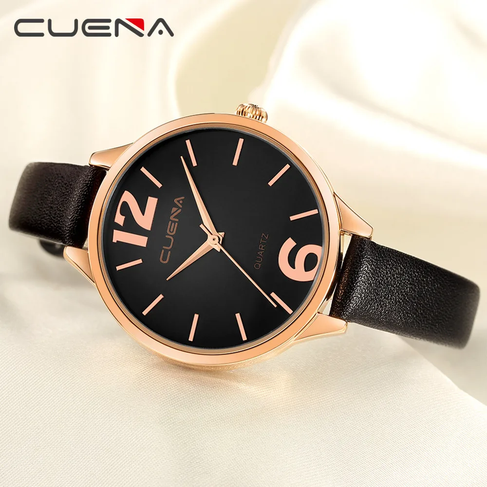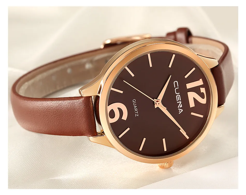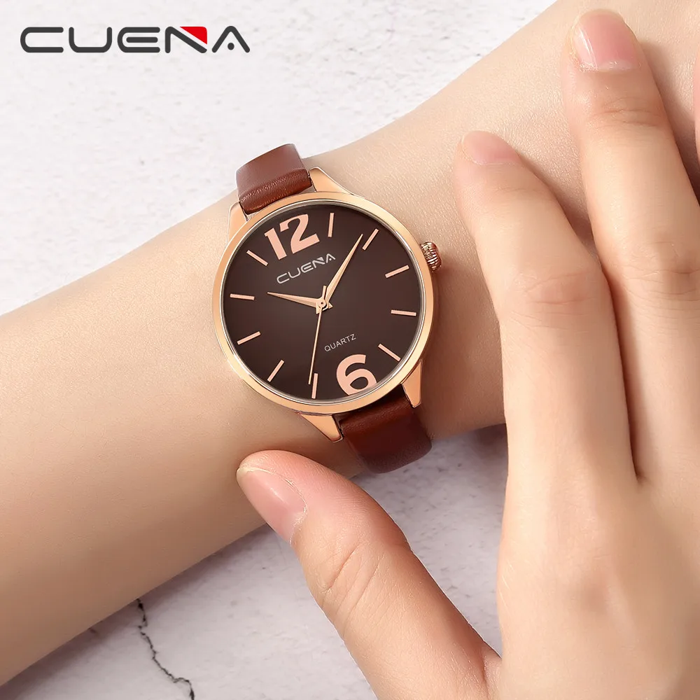 | [해외] CUENA 슈퍼 슬림 쿼츠 시계 럭셔리 브랜드 여성의 팔찌 시계 여성 시계 최고 럭셔리 브랜드 가죽 벨트 |